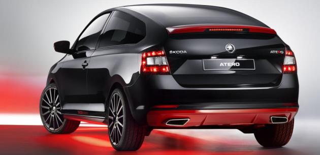 Kırmızı spoyler arka pencerede, logo ve LED aydınlatmaların üzerinde yer alıyor. Arka kısımda Atero konseptine Octavia vRS’den alınmış ikili egzoz boruları ve difüzör eklenmiş. Kaputun altında ise 125 hp 1.4 litre TSI benzinli motor ve yedi kademe DSG şanzıman yer alıyor.